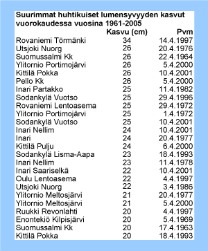 Lisää huhtikuun lumisateista ja takatalvista aiemmat huhtikuut -sivulla.
