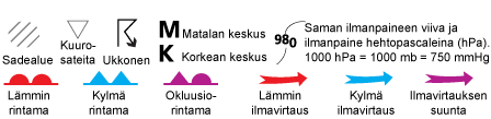 Kartta perustuu ilmoitetun hetken Euroopan säähavaintoihin. Lisäksi mukana on meteorologin tekemä tulkinta kyseisen hetken säätilanteesta Euroopassa.