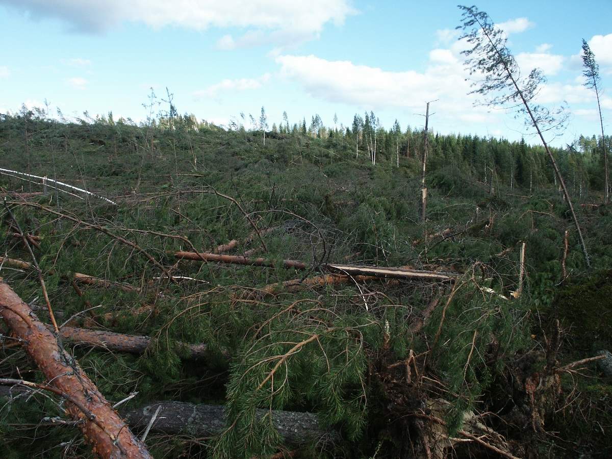 Ilmatieteen laitos tutki alueella tuhojäljet. Tuulivahinkoja esiintyi kahdella toisistaan erillisellä alueella. Ensimmäiset vahingot (kuvassa 1 vasemmalla) syntyivät likimain Sysmäjärven ja valtatien 17 välisellä alueella lähellä Joensuun ja Outokummun kunnanrajaa. Tämän jälkeen useat silminnäkijät havaitsivat vesipatsaan Viinijärvellä, jossa pyörre kaatoi puita saarista ja aiheutti vahinkoa myös muutamille rakennuksille. Vesistön ylityksen jälkeen trombi lienee heikennyt Laikanlahden lähistöllä.